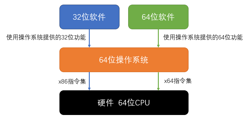 - 如果你的CPU是64位的,既可以安装x64版本,也可以安装x86版本,因为x64指令集兼容x86指令集。但是,如果你安装的是x86版本,虽然CPU仍然是64位的,但是你的软件只会使用x86指令集,也就是说,你的软件只会向CPU运送32位的地址和数据,信息高速公路有一半没有用上,无法完全发挥64位CPU的优势。